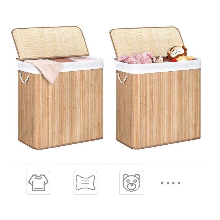 Už žiadne preplnené koše na bielizeň ani hľadanie svetlých kúskov medzi tmavými. Tento priestranný 150-litrový kôš vám umožňuje prehľadne roztriediť oblečenie do troch samostatných častí. Vďaka viečku môžete bielizeň ľahko zakryť jednou rukou, zabrániť úniku zápachu a udržiavať svoju spálňu, kúpeľňu a práčovňu vždy upratané. Elegantný bambusový vzhľad sa tiež krásne hodí do každého interiéru.