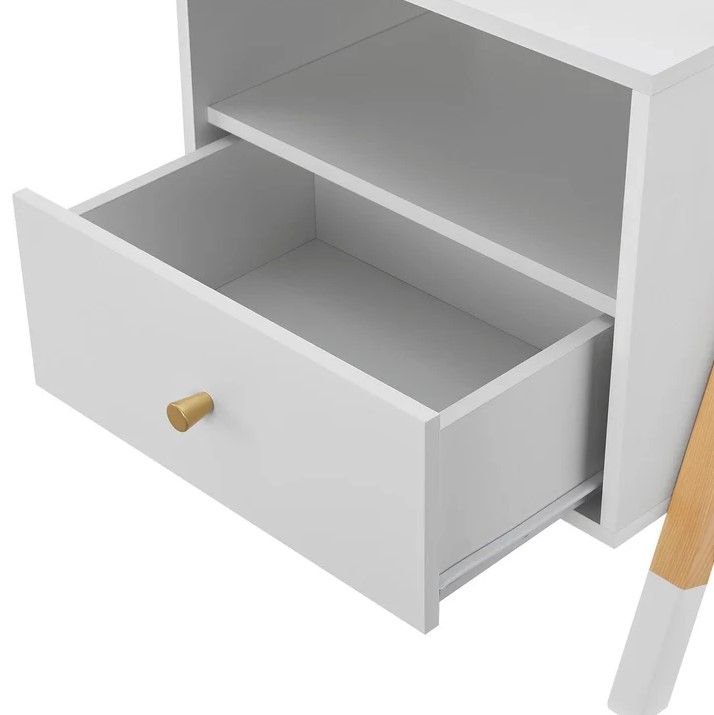 Detský nočný stolík vnesie do izbičky radosť a poriadok. Jeho moderný dizajn s bielym lesklým povrchom a zlatým úchytom poteší malých aj veľkých. Vďaka kompaktným rozmerom sa zmestí vedľa každej postele a stane sa praktickým pomocníkom pre všetky detské poklady.