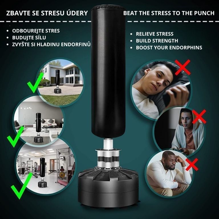 Zažite dokonalý spôsob, ako vybiť stres, zlepšiť kondíciu a posilniť celé telo. Voľne stojace boxovacie vrece s výškou 175 cm je ideálnym parťákom pre tréning úderov i kopov, či už patríte medzi skúsených boxerov, alebo si chcete dopriať energické odreagovanie po náročnom dni. Vďaka atraktívnemu dizajnu v čierno-striebornej kombinácii skvele zapadne do každej domácej posilňovne.