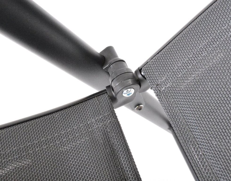 Stabilná hliníková konštrukcia je odolná voči korózii a poveternostným vplyvom. Textília 2x1 s penovou výplňou je príjemná na dotyk a ľahko sa udržiava. Kreslo má nosnosť 120 kg a vďaka skladaciemu prevedeniu šetrí miesto počas uskladnenia.